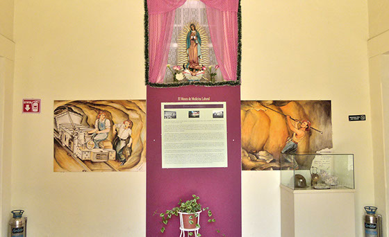 En el sitio el visitante conoce los tratamientos y remedios utilizados en la atención de las enfermedades y padecimientos que eran comunes en los mineros de esta región. El museo se complementa con una exhibición de carteles del Departamento de Seguridad en las minas, donde se ilustran de manera detallada accidentes reales ocurridos en las minas, con la finalidad de advertir de los riesgos y peligros que los mineros podrían enfrentar en el desempeño de su trabajo si no tomaban en cuenta las medidas de seguridad. Gracias a ser detallados también nos permiten observar las difíciles condiciones de trabajo que predominaron en estos laboríos.